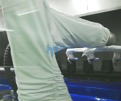 Equipped with automatic knowledge system, precision flow control system, two-component paint online automatic proportioning system, the entire line to realize fully automated production, data-based intelligent production, compared with the fixed gun spraying, can save more than 30% of the paint, reduce the time of adjusting the paint to improve production efficiency.