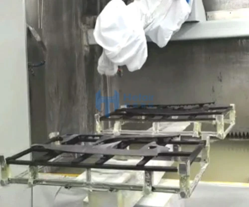 The main spraying products are: automotive interior wood veneer parts; paint solvent-based paint, water-based paint; spraying using offline robot + turn spray spray mode, spraying configuration YASKAWA robot, using air spray gun spraying, line edge supply system; spraying workpiece tray size L1300mm * W600mm * H200mm, the design of the production beat of 60S.